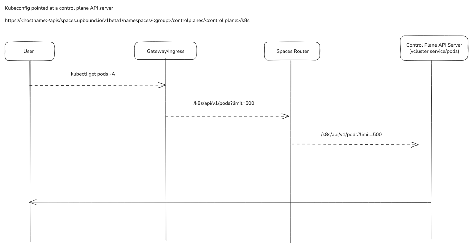 • spaces-api: API for managing groups, control planes, shared secrets, and telemetry objects (accessed only through spaces-router)